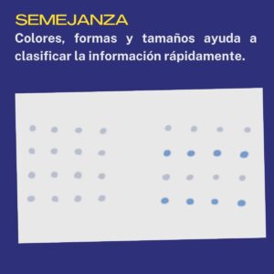 - Similitud: los elementos con características similares se agrupan visualmente.